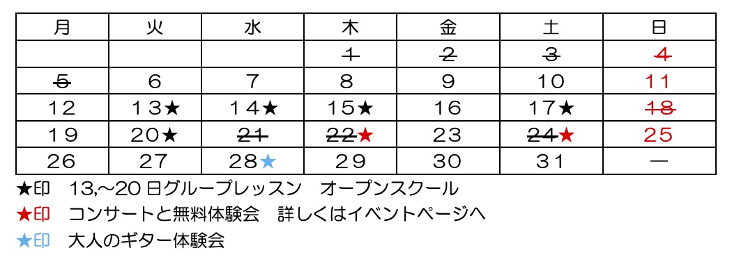 いきなりギターを買うのは勇気がいる、という方には貸し出しギター(有料、月額¥1,000〜)もご用意しています。急いで購入しなくても大丈夫です。ギターの種類もいろいろありますので、ご自分にあったギターを選んでからお求めになることをおすすめいたします。